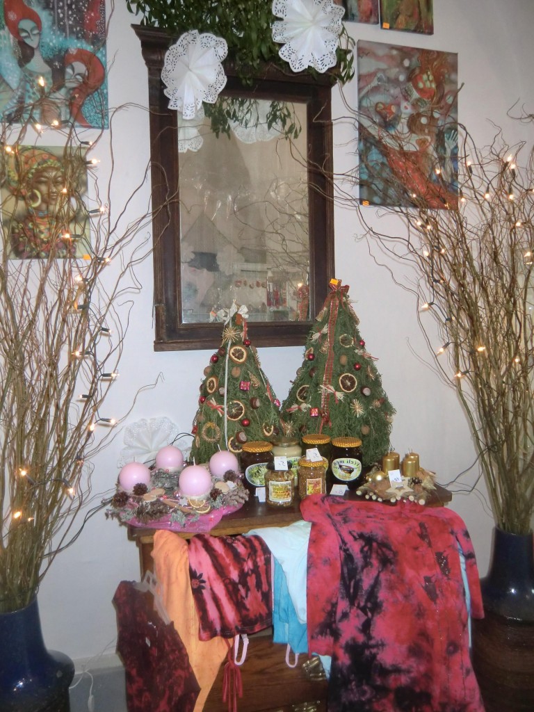 A december elsején nyílt karácsonyi kiállítás és vásár még huszadikáig látogatható, érdemes ide betérnie annak, aki értékes és egyedi ajándékkal szeretné meglepni szeretteit. Szinte lehetetlen felsorolni, hányféle termék közül válogathatunk, hiszen a karácsonyi ünnephez kapcsolódó dísztárgyak (koszorúk, karácsonyfa díszek, téli motívummakkal díszített ajándéktáskák, díszpárnák, terítők, gyertyák stb.) mellett kézzel festett porcelánt, fonott kosarakat, játékokat, ékszereket, selyemkendőket, szőtt pokrócokat, képeket, ruhaneműt, szobrokat, lakástextilt és sok más szépséges terméket találunk. A kiállított és vásárlásra csábító tárgyak színes forgataga szemet gyönyörködtető, az alkotó ember harmóniáját és valódi ünnepváró hangulatot tükröz.