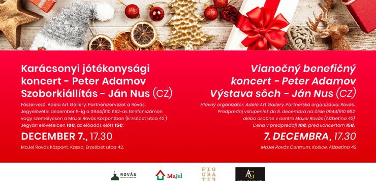 december 7., 17.30: Karácsonyi jótékonysági koncert – Peter Adamov. Szoborkiállítás –  Ján Nus (CZ). Főszervező: Adela Art Gallery. Partnerszervezet a Rovás. Jegyelővétel december 5-ig a 0944/910 652-as telefonszámon vagy személyesen a MaJel Rovás Központban (Erzsébet utca 42.) Jegyár: elővételben 10€, az előadás előtt 15€.
