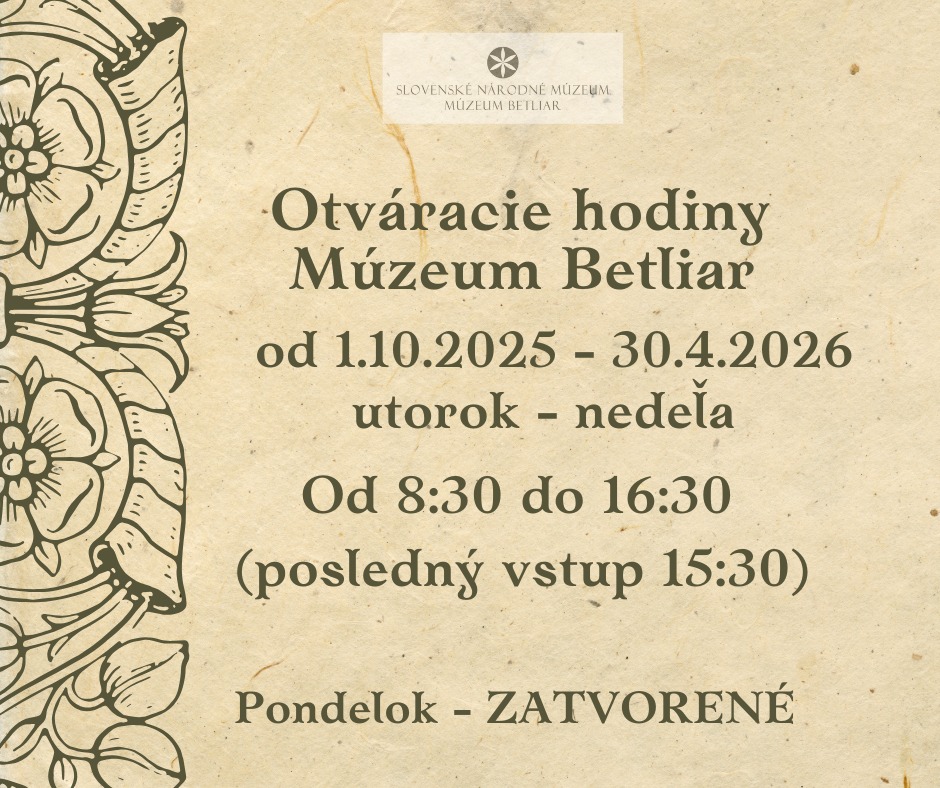 A betléri kastély hétfőnként zárva lesz, keddtől vasárnapig 8:30 és 16:30 óra között várja a látogatókat, az utolsó csoport 15:30-kor indul. Ez a nyitvatartás 2025. október 1-től egészen 2026. április 30-ig érvényes.