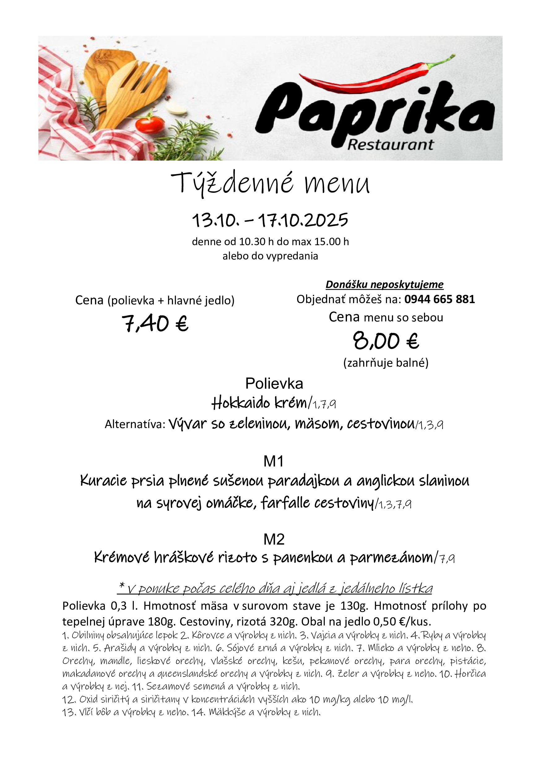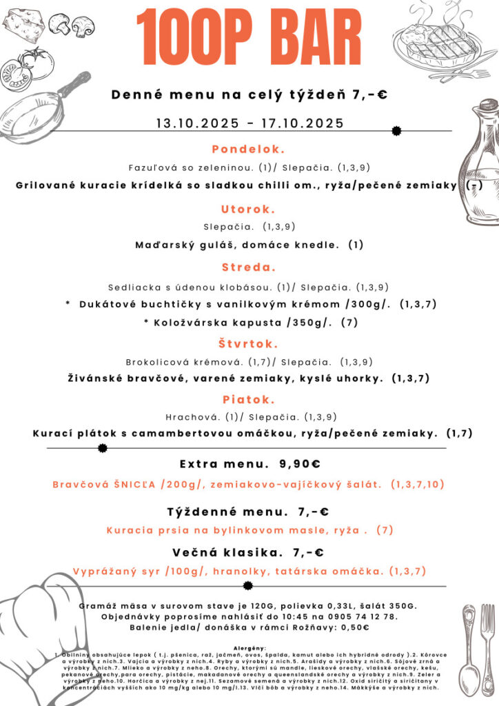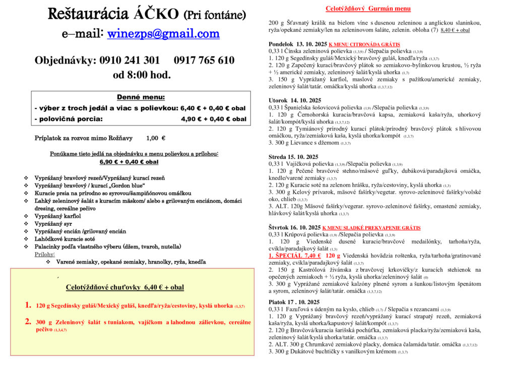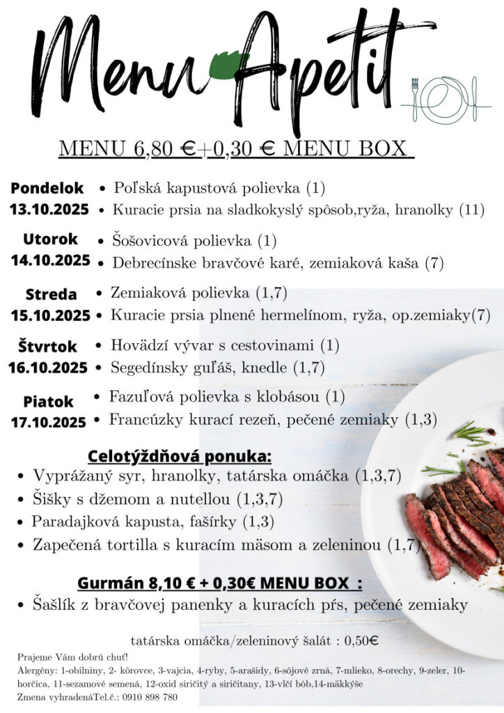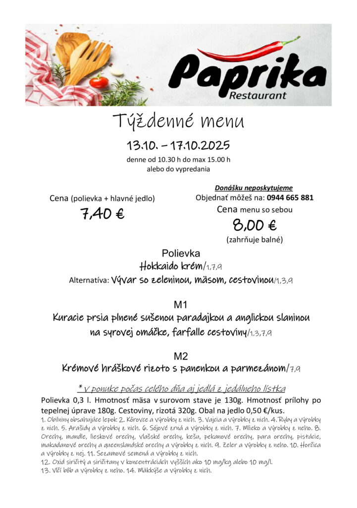 Ezen a héten is hozunk néhány ebédtippet. Nézzük, mi a kínálat a rozsnyói étkezdékben az október 13-án kezdődő héten! Jó étvágyat!