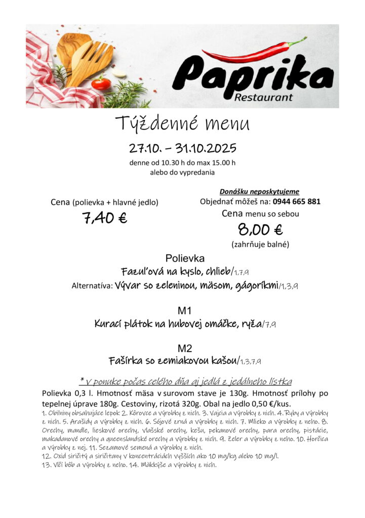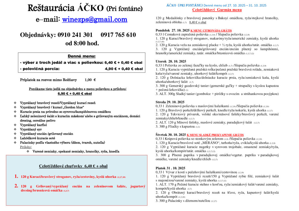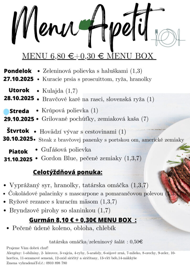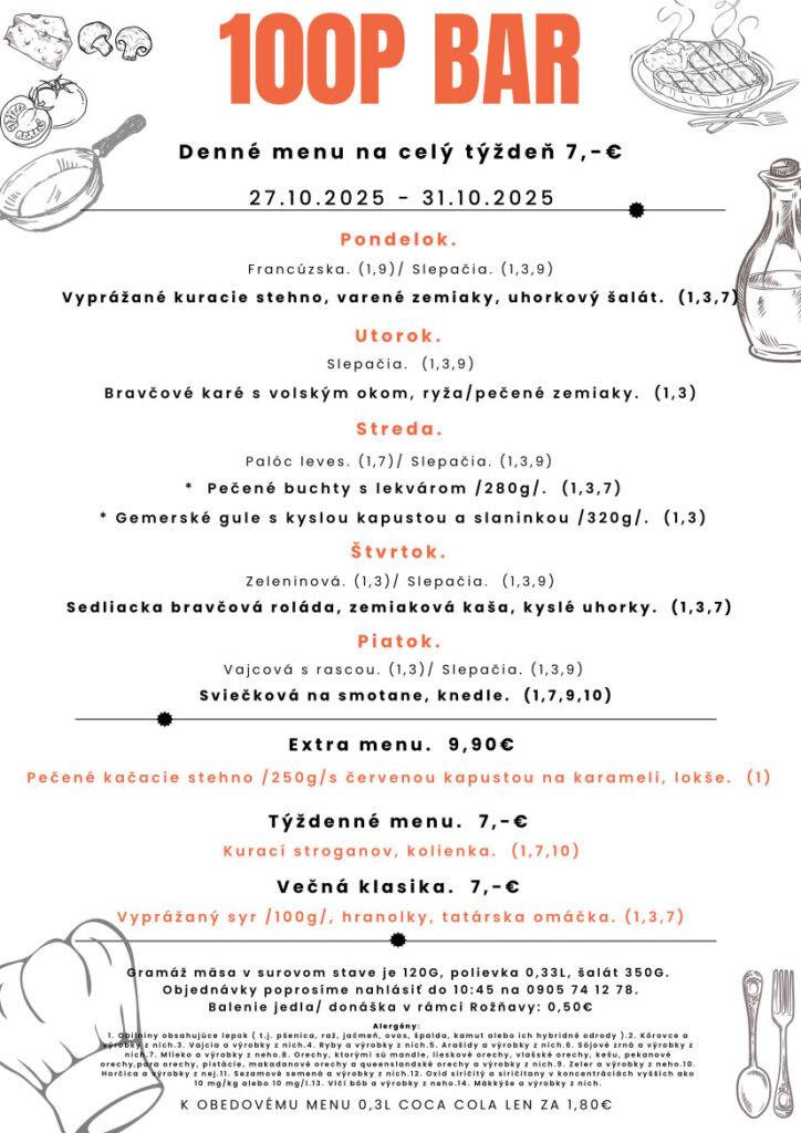 Ismét hozunk néhány rozsnyói ebédtippet, ezúttal az október 27-én kezdődő hétre! Jó étvágyat!