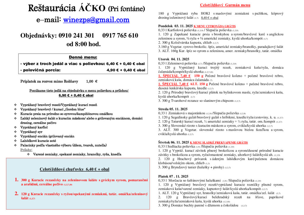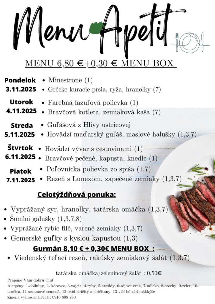 Ismét hozunk néhány rozsnyói ebédtippet, ezúttal az első novemberi munkahétre! Jó étvágyat!