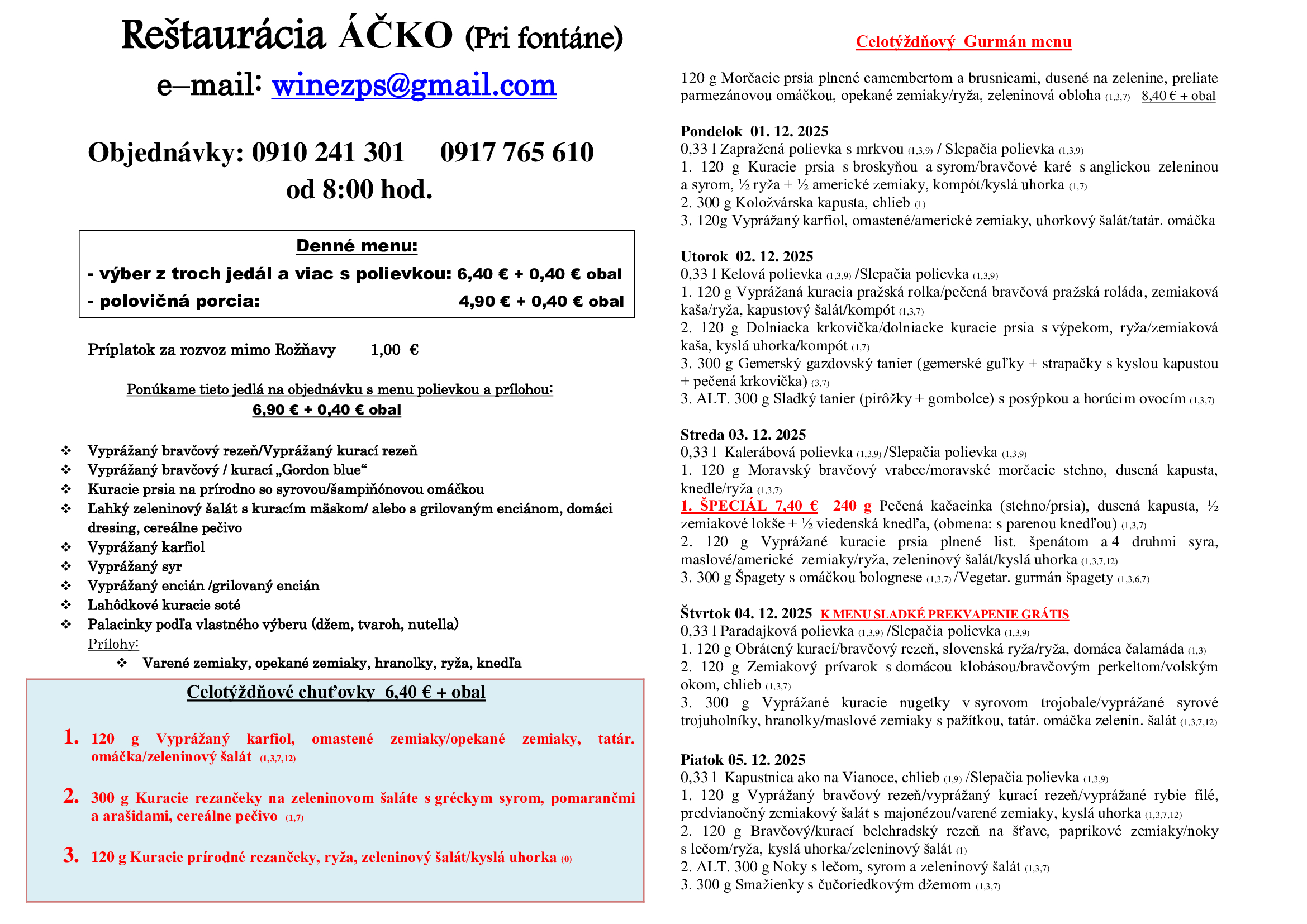 Nézzünk pár rozsnyói ebédtippet december első hetére! Jó étvágyat!
