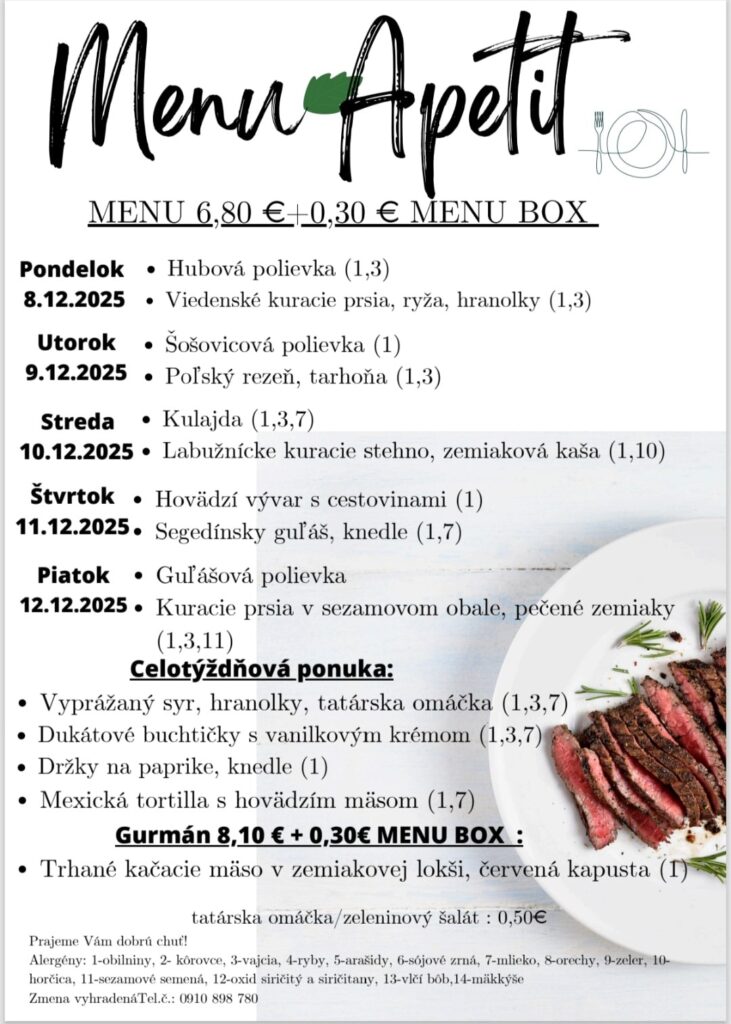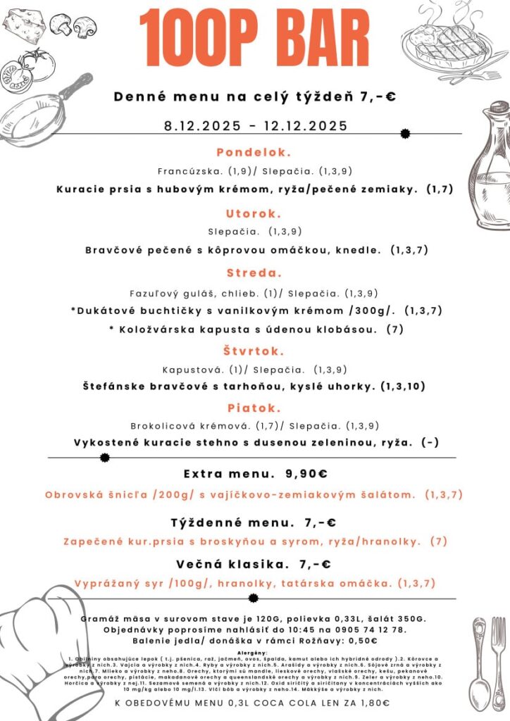 Ismét hoztunk pár rozsnyói ebédtippet, ezúttal a december 8-án kezdődő hétre! Jó étvágyat!