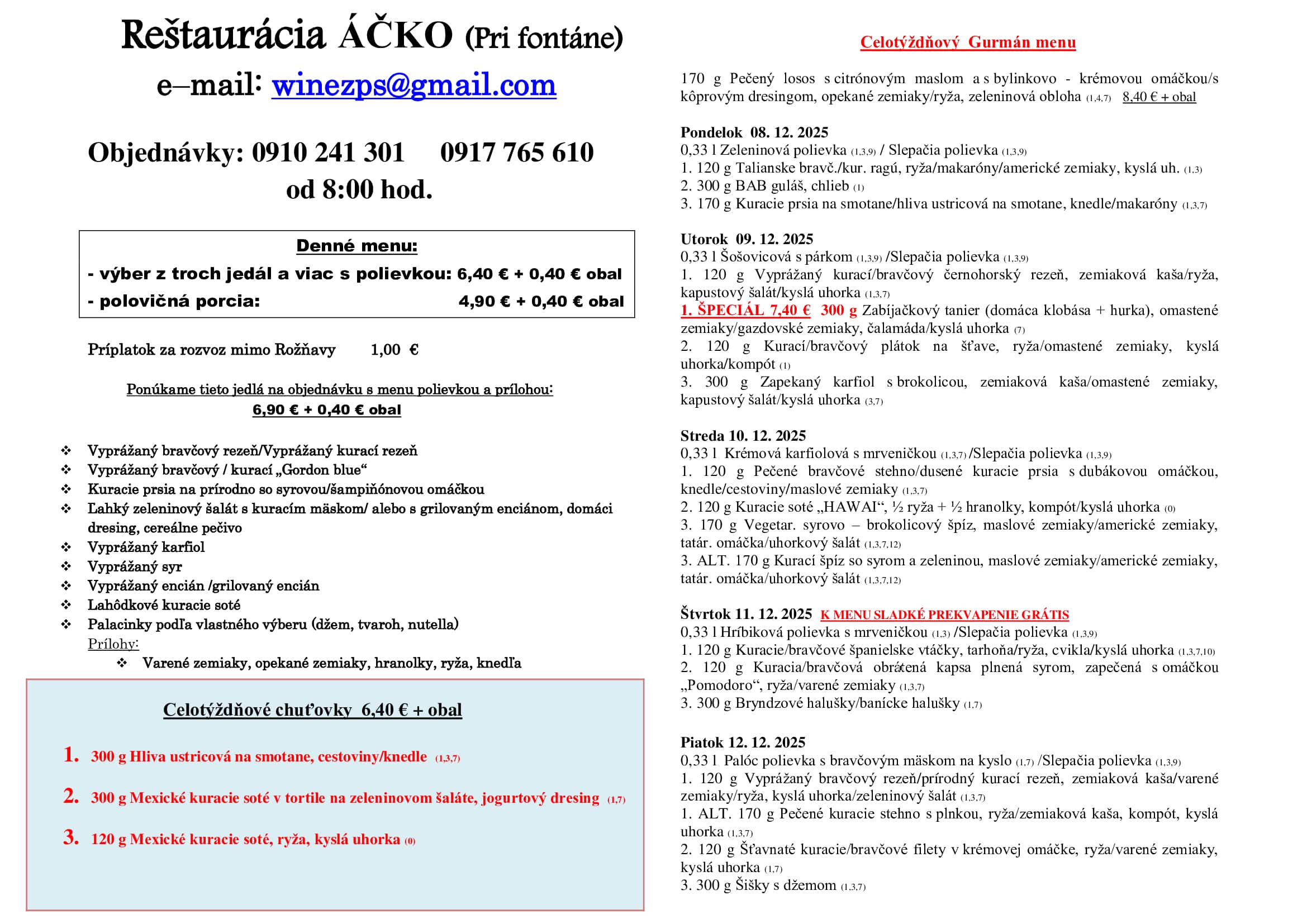 Ismét hoztunk pár rozsnyói ebédtippet, ezúttal a december 8-án kezdődő hétre! Jó étvágyat!