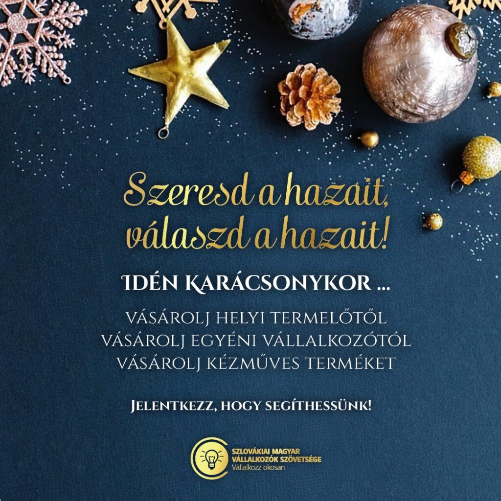 A Szlovákiai Magyar Vállalkozók Szövetsége arra biztat mindenkit, hogy idén is gondolja át, hova kerül az ünnepi kiadás. A vásárlásokkal nem csupán ajándékokat teszünk a fa alá, hanem közösségeink jövőjét is építjük.