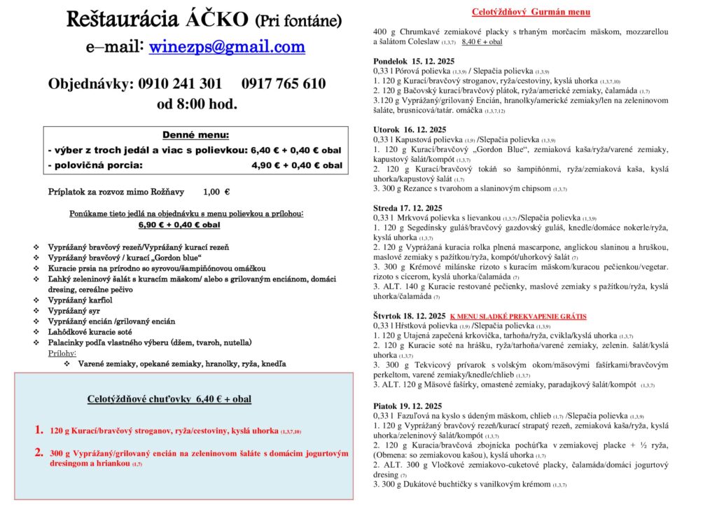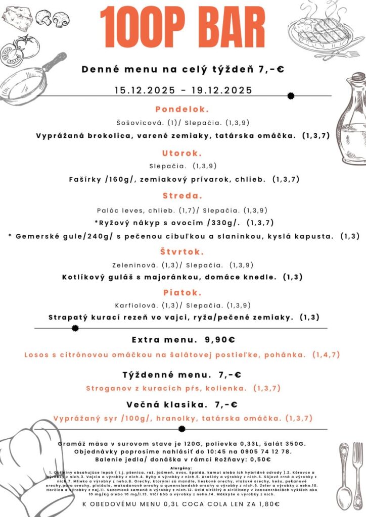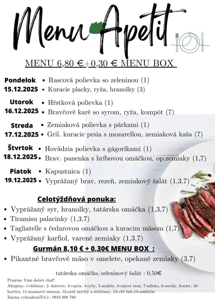 Ismét hoztunk pár rozsnyói ebédtippet, ezúttal a december 15-én kezdődő hétre! Jó étvágyat!