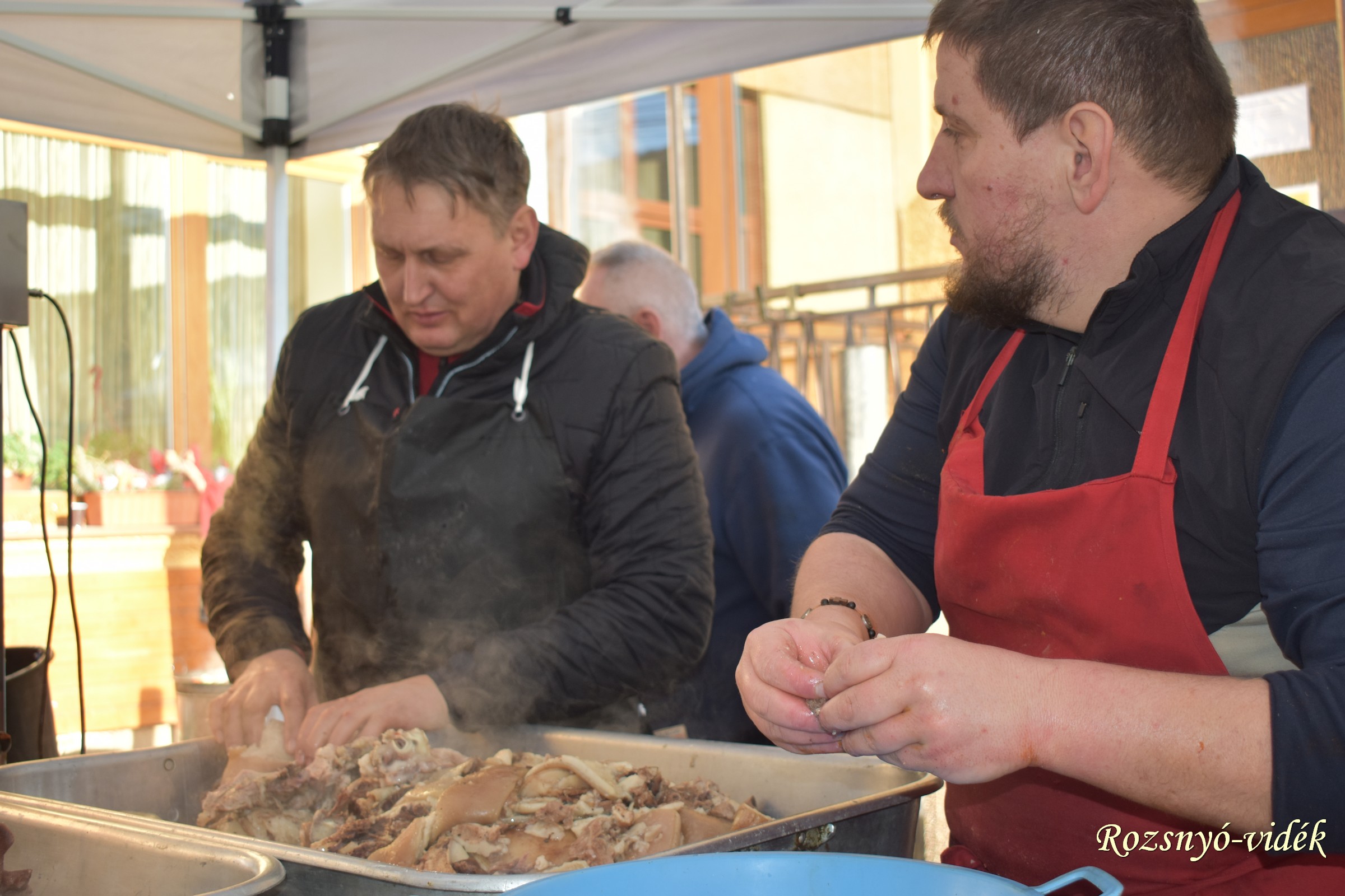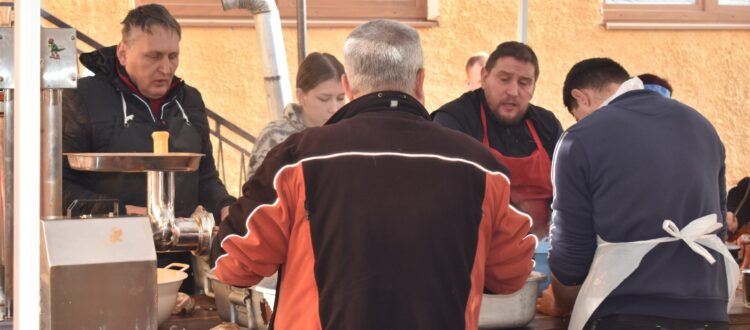 Reggeltől nagy volt a sürgés-forgás a helyi kultúrház udvarán és a benti helyiségekben. Kún István polgármesterrel az élen az önkormányzati képviselők, az önkéntes tűzoltóegylet, a futballklub, a Csemadok tagjai és számos önkéntes dolgozott a hagyományos disznótoros ételek elkészítésén.