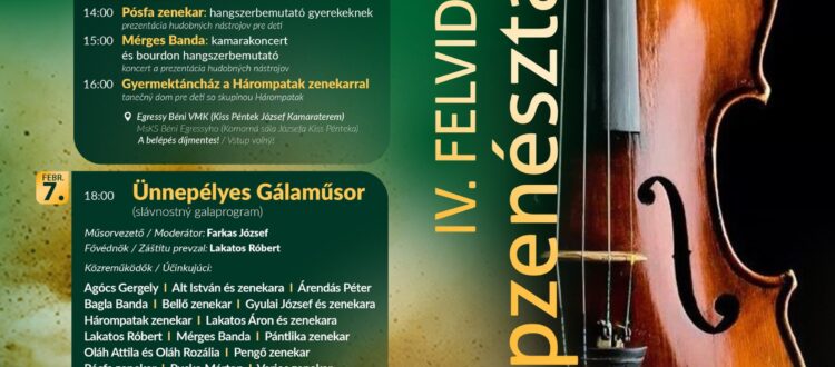 2026. február 6-án és 7-én negyedik alkalommal rendezik meg a Felvidéki Népzenésztalálkozót Komáromban, az Egressy Béni Városi Művelődési Központban.