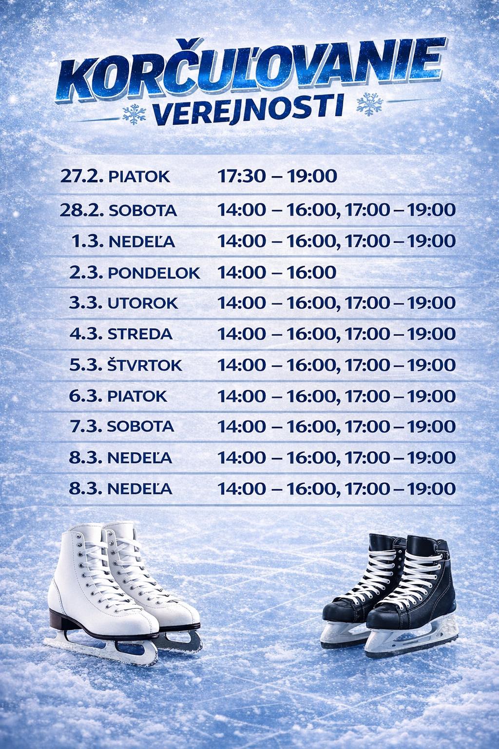 A korcsolyapálya február 27-én, pénteken 17:30 és 19:00 óra között várja a sportolni vágyókat, hétfőn, március 2-án pedig 14:00 órától 16:00-ig. A többi napon még hosszabb ideig, délután 14:00 és 16:00, majd 17:00 és 19:00 óra között lesz nyitva a stadion.