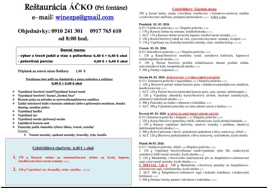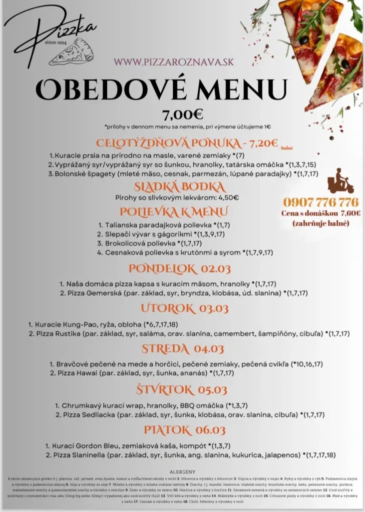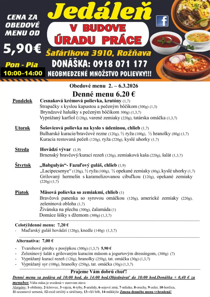 Ismét hoztunk pár rozsnyói ebédtippet, ezúttal március első munkahetére. Jó étvágyat!
