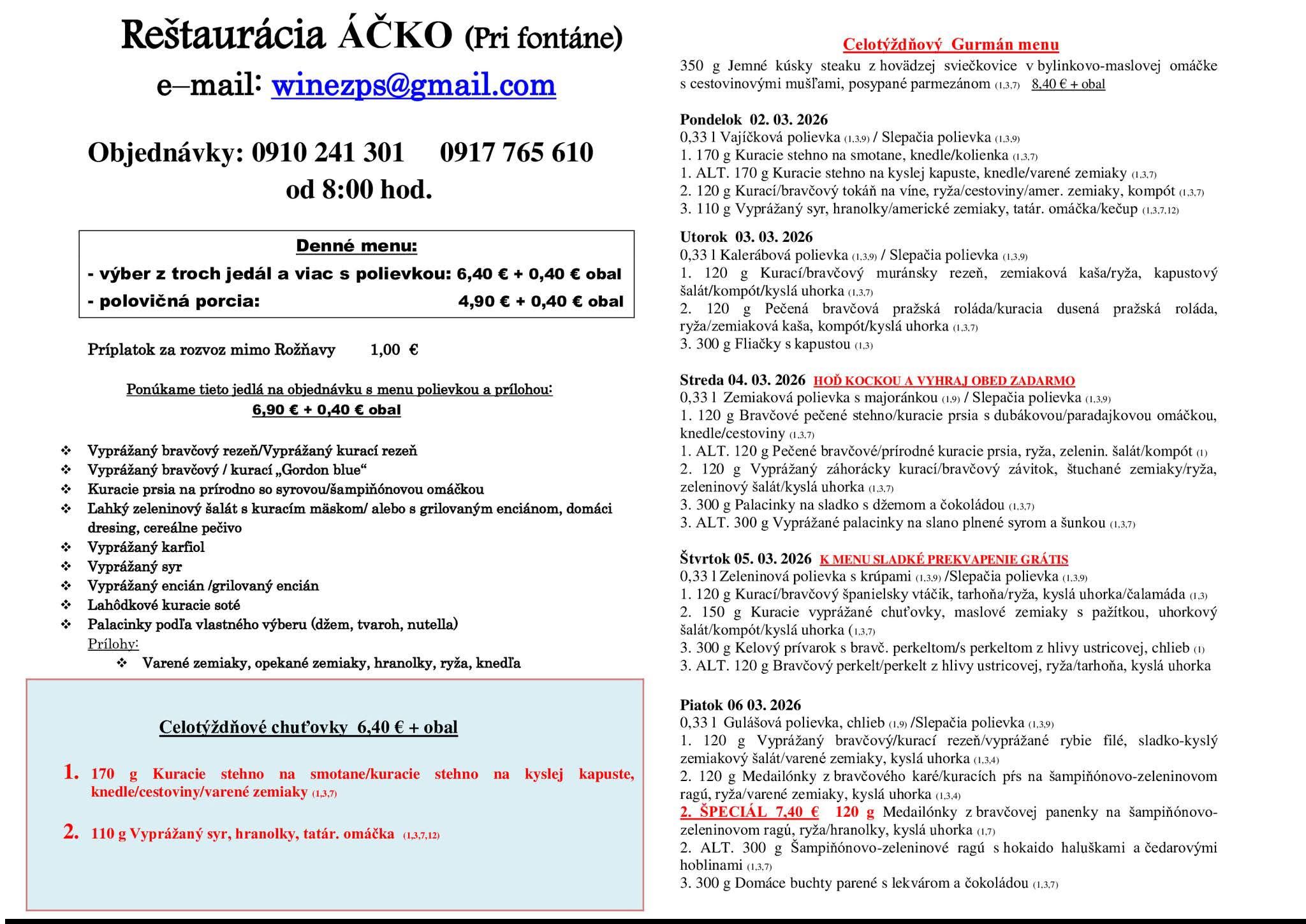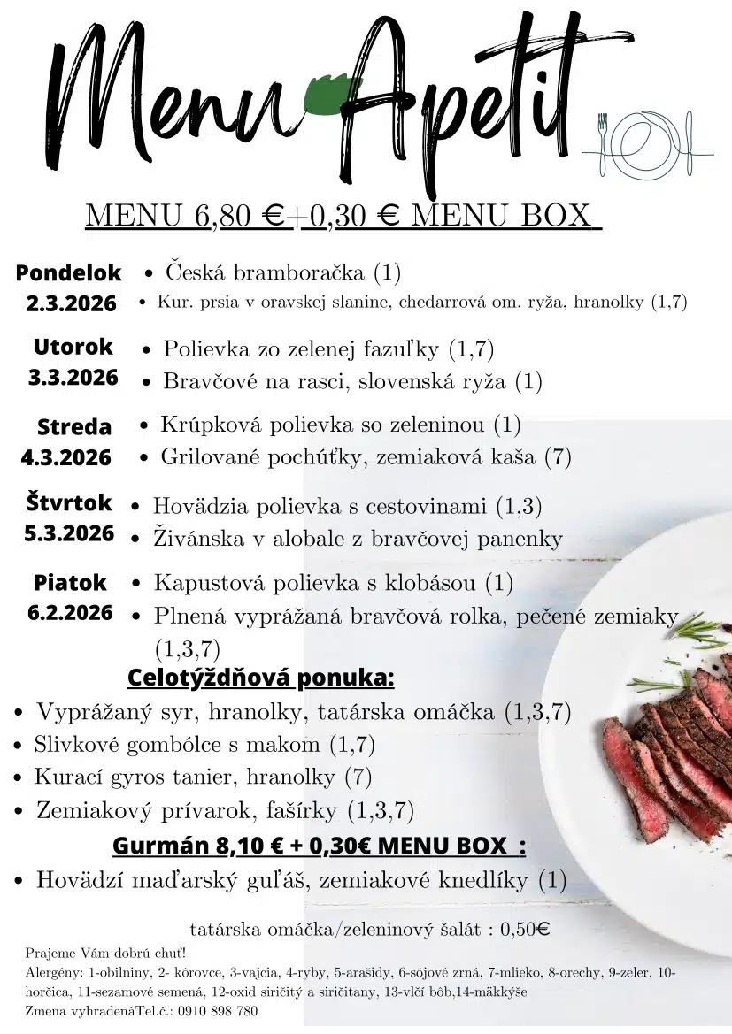 Ismét hoztunk pár rozsnyói ebédtippet, ezúttal március első munkahetére. Jó étvágyat!