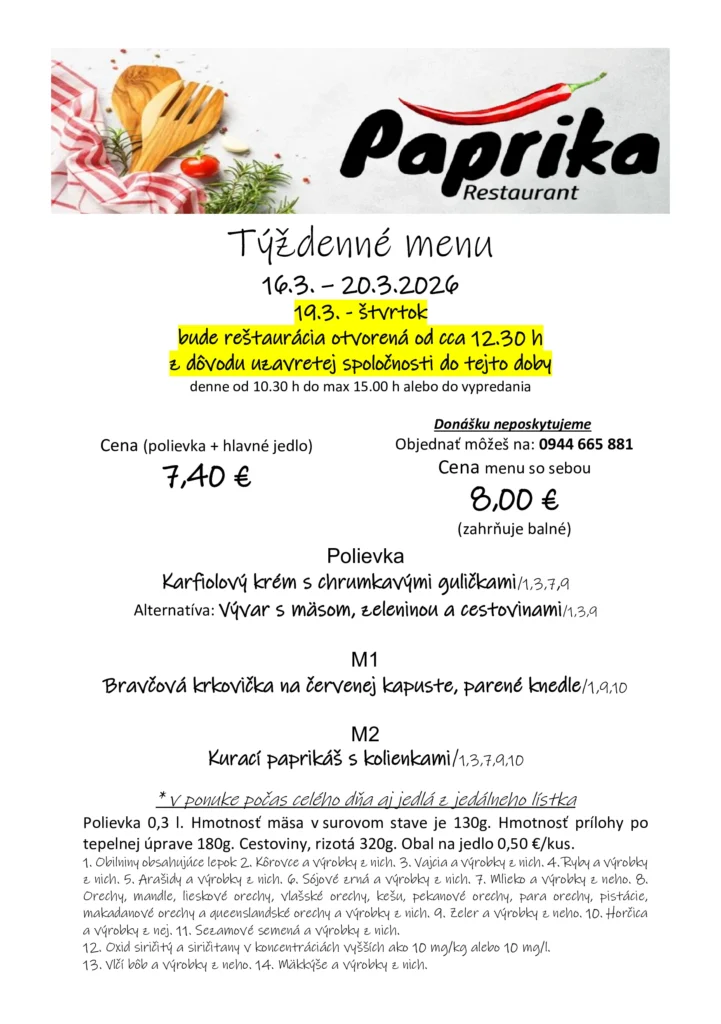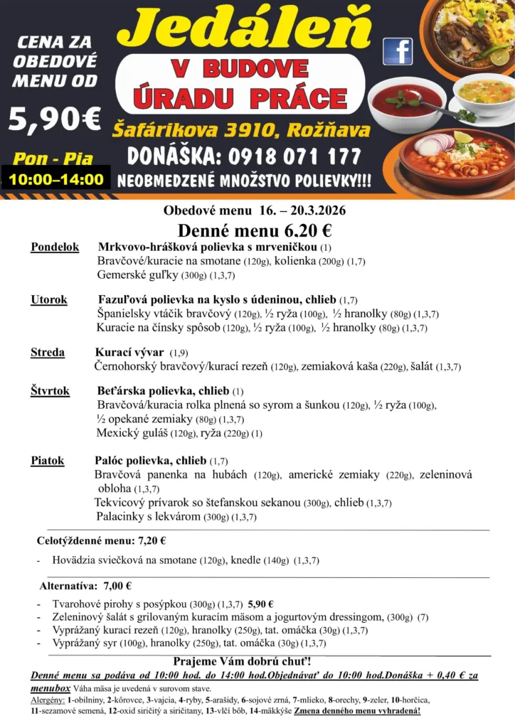 Ismét hoztunk pár rozsnyói ebédtippet, ezúttal a március 16-án kezdődő hétre. Jó étvágyat!