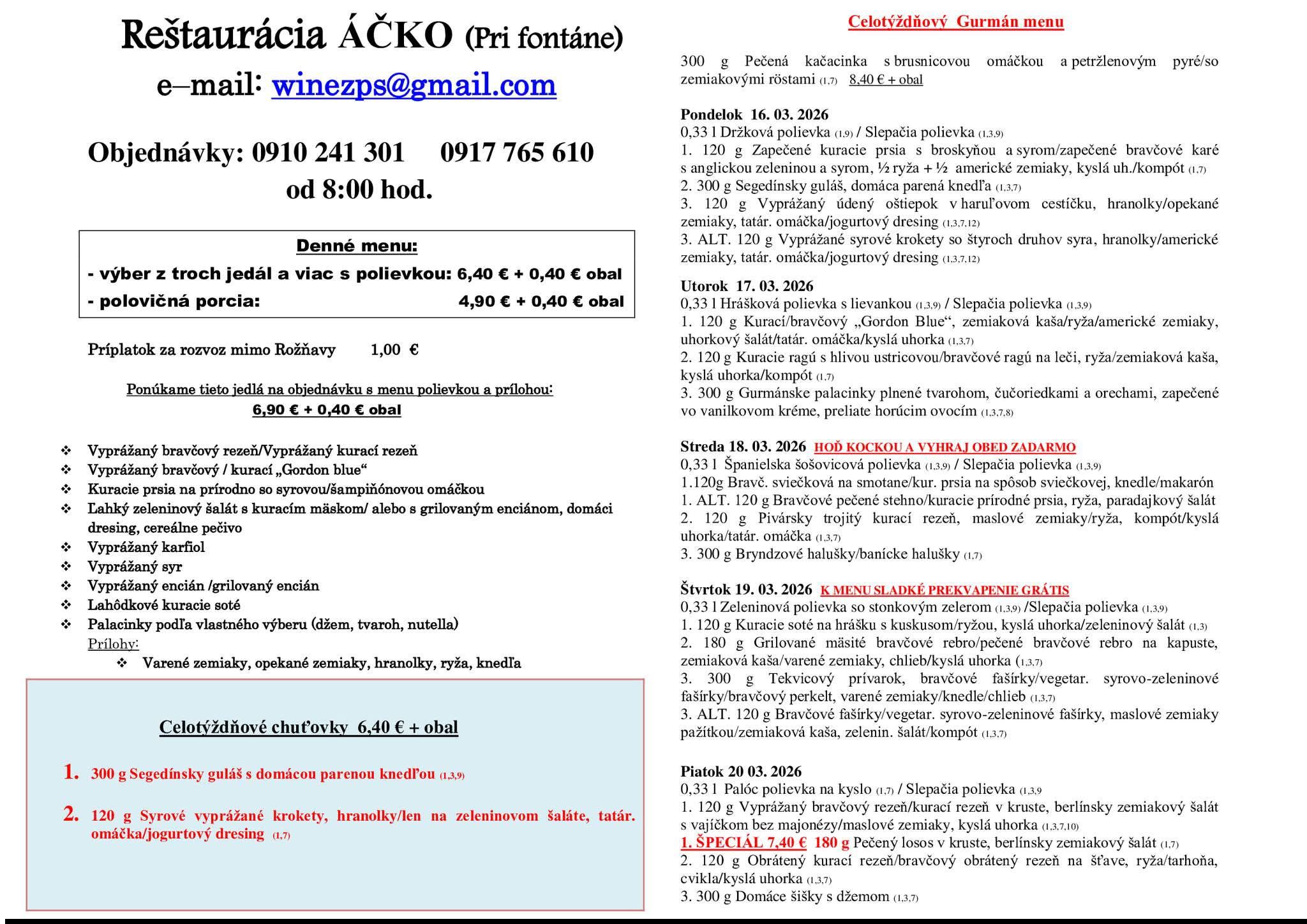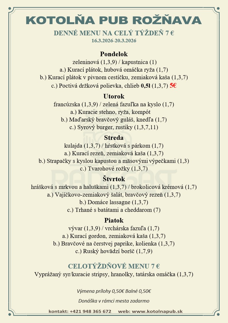 Ismét hoztunk pár rozsnyói ebédtippet, ezúttal a március 16-án kezdődő hétre. Jó étvágyat!