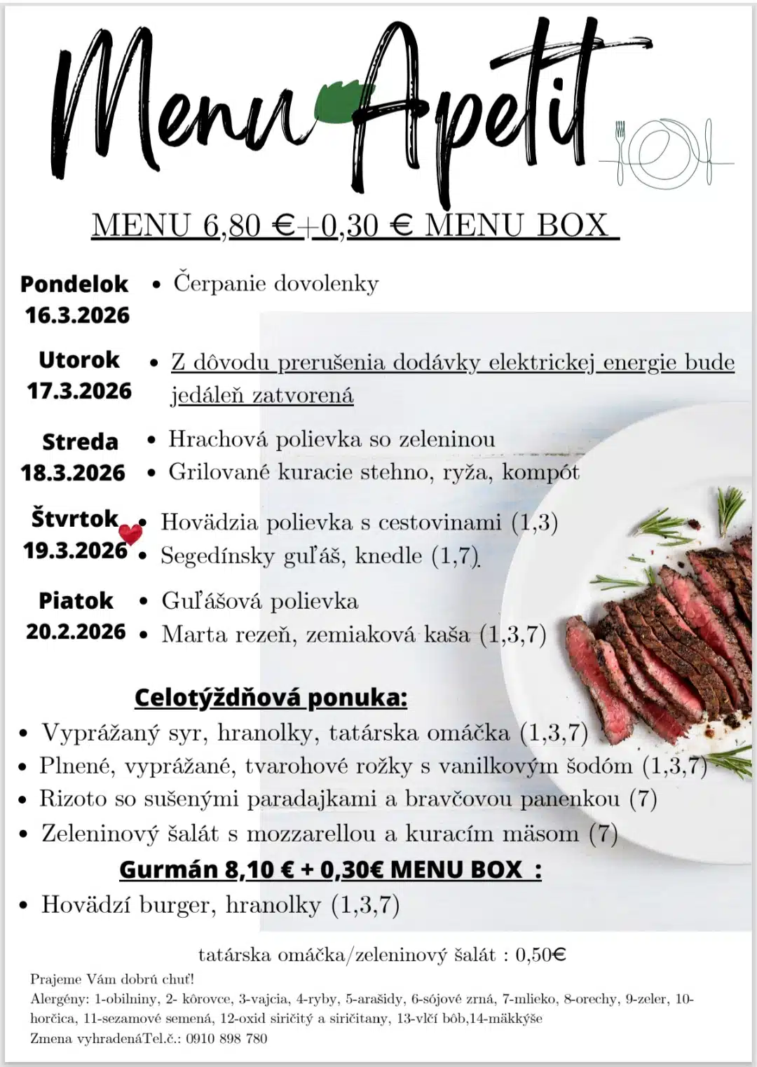 Heti ebédmenü március 16-tól