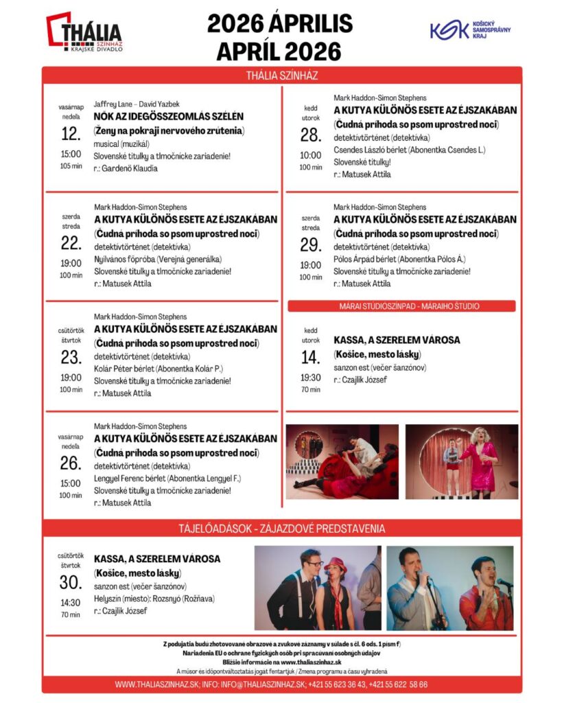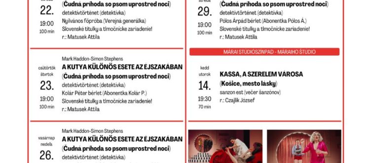 Áprilisban újabb bemutató, A kutya különös esete az éjszakában című detektívtörténet várja a közönséget a kassai Thália Színházban.