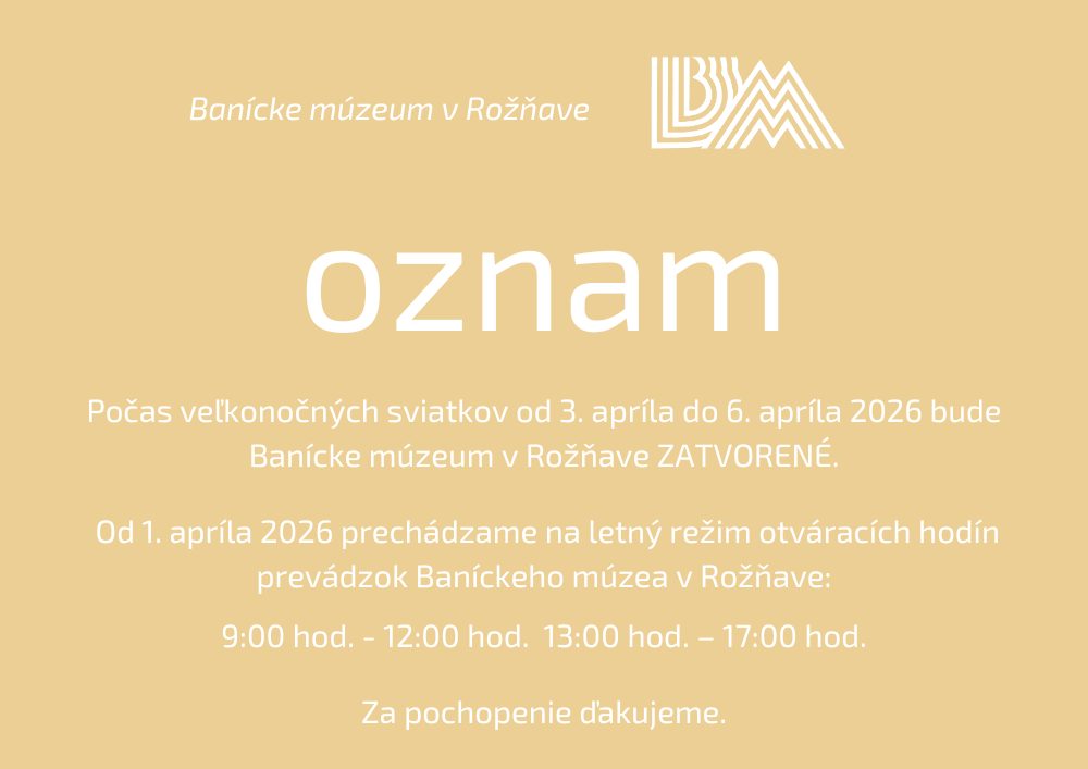 A Rozsnyói Bányászati Múzeum a húsvéti ünnepek alatt, 2026. április 3-tól 6-ig zárva lesz – tájékoztatott az intézmény a közösségi oldalán, egyúttal értesítik a látogatókat, hogy indul a nyári nyitvatartási üzemmód.