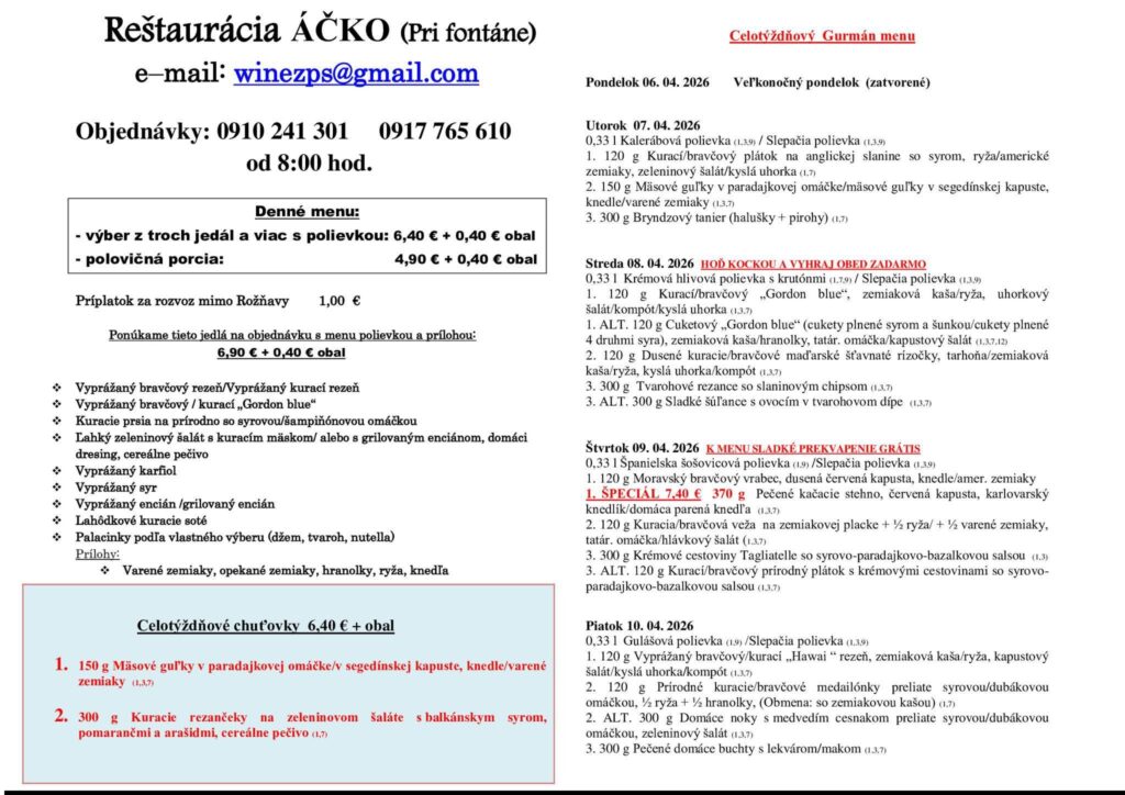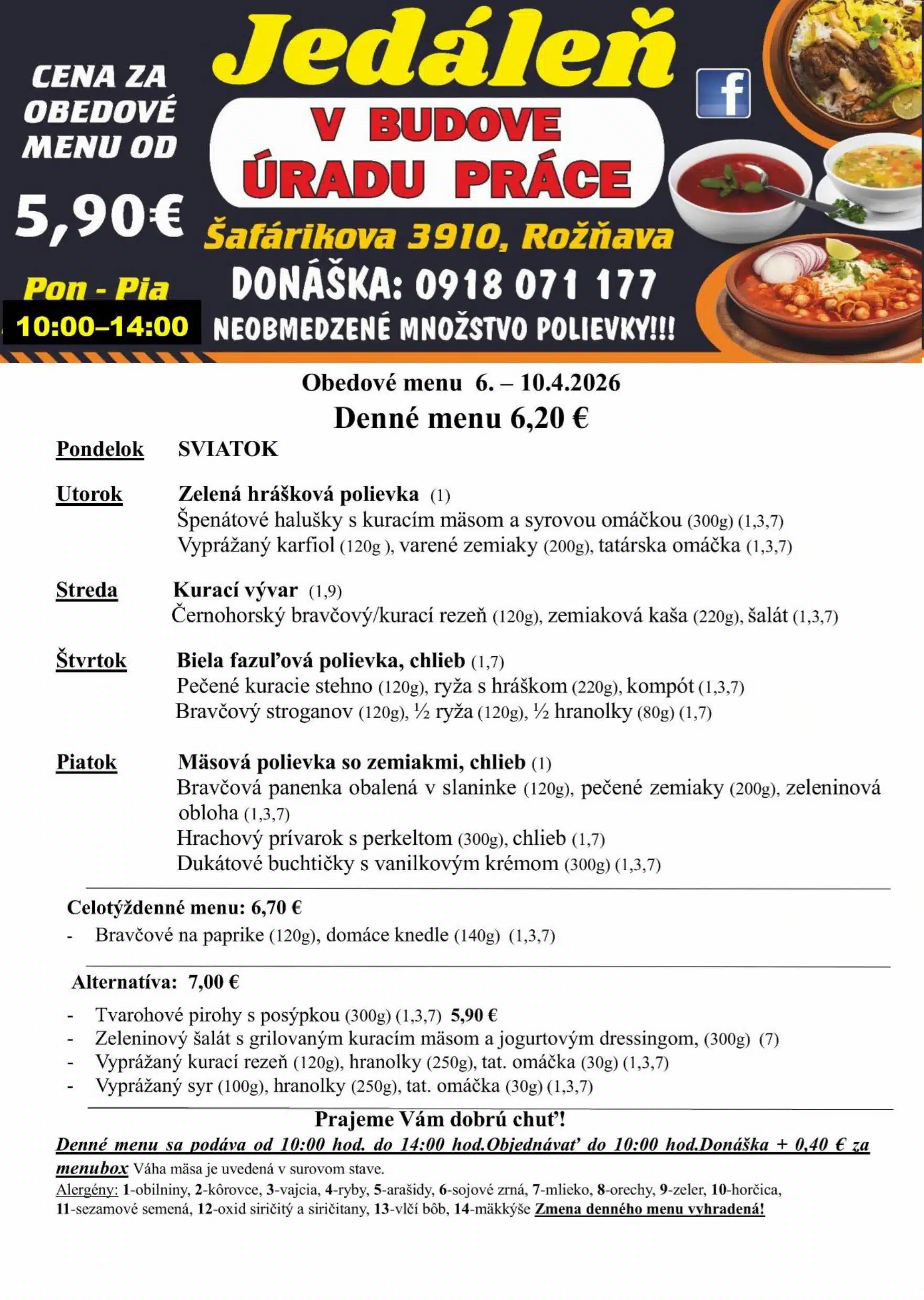 Hoztunk néhány rozsnyói ebédtippet, ezúttal az április 7-én kezdődő munkahétre. Jó étvágyat!
