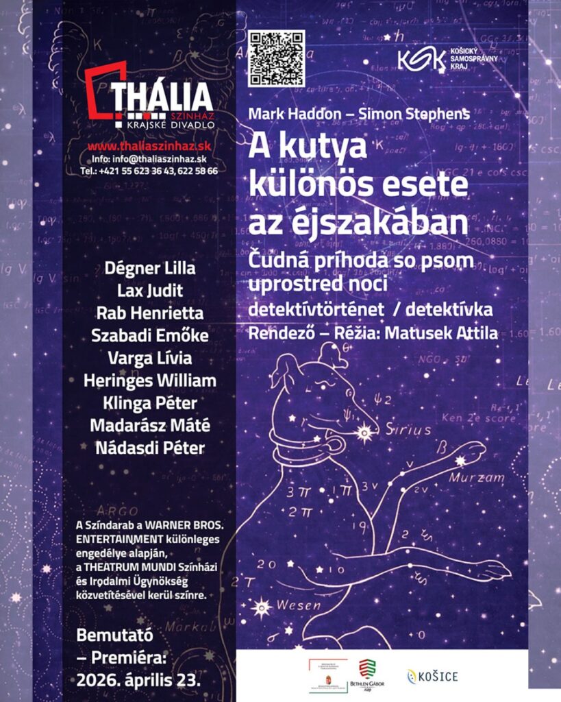 Májusban egy különleges kortárs előadás, A kutya különös esete az éjszakában című detektívtörténet várja a közönséget a kassai Thália Színházban, és a társulat több városban is vendégszerepel.