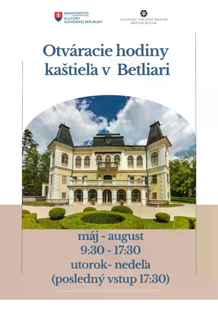 A nyári szezon közeledtével május 1-jétől változik, pontosabban hosszabbodik a betléri kastély és a krasznahorkaváraljai mauzóleum nyitvatartási ideje – tájékoztatta a nyilvánosságot a Betléri Múzeum. A közlemény szerint a mauzóleum esetében továbbra sem tér vissza a teljes nyitvatartás.