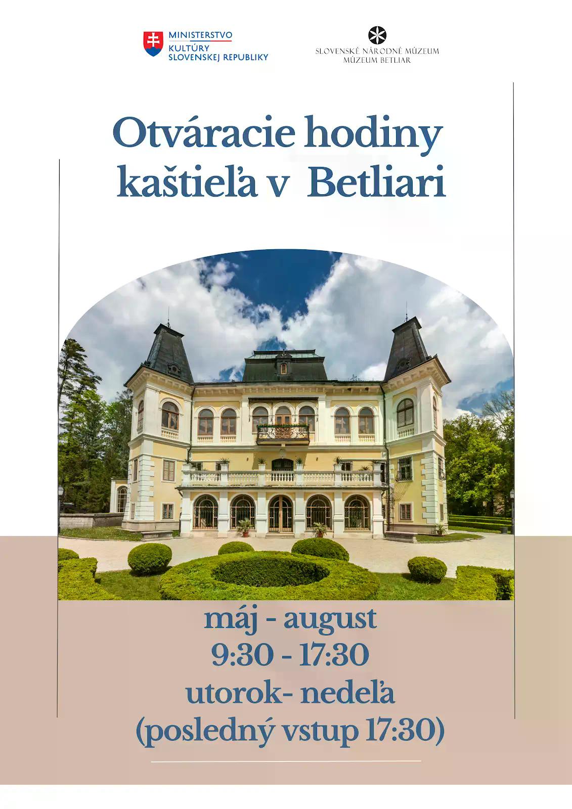 A betléri Andrássy-kastély májustól augusztusig, hétfő kivételével naponta 9:30 és 17:30 óra között várja a látogatókat. Az utolsó csoport 17:30-kor indul. Andrássy Dénes gróf és felesége, Franciska grófné egyedülálló nyughelye, a krasznahorkaváraljai mauzóleum a nyári idényben péntektől vasárnapig 10:00 és 17:30 óra között látogatható.