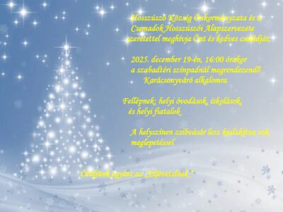 2025 december 19. 16:00 - Hosszúszó Karácsonyváró ünnepség Hosszúszó Község Önkormányzata és a Csemadok Hosszúszói Alapszervezete mindenkit szeretettel... Bővebben