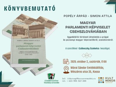 2025 október 2. 17:00 - Kassa Popély Árpád és Simon Attila: Magyar parlamenti képviselet Csehszlovákiában – könyvbemutató A Csemadok Kassai Városi Választmánya szervezésében október 2-án, csütörtökön 17:00... Bővebben