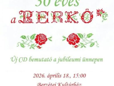 2026 április 18. 15:00 - Berzéte CD-bemutató ünnepséget tart a 30 éves Berkő A berzétei kultúrházban rendezik meg 2026. április 18-án, szombaton 15:00... Bővebben