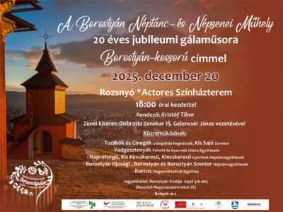 2025 december 20. 18:00 - Rozsnyó „Borostyán-koszorú” – a 20 éves Borostyán Néptánc- és Népzenei Műhely jubileumi gálaműsora A Borostyán Néptánc- és Népzenei Műhely mindenkit szeretettel vár a... Bővebben