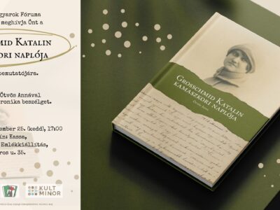 2025 november 25. 17:00 - Kassa Grosschmid Katalin kamaszkori naplója – könyvbemutató A Kassai Magyarok Fóruma minden érdeklődőt szeretettel vár november 25-én... Bővebben