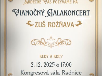 2025 december 2. 17:00 - Rozsnyó Karácsonyi gálakoncert 2025. december 2-án 17:00 órától kerül sor a Rozsnyói Művészeti... Bővebben