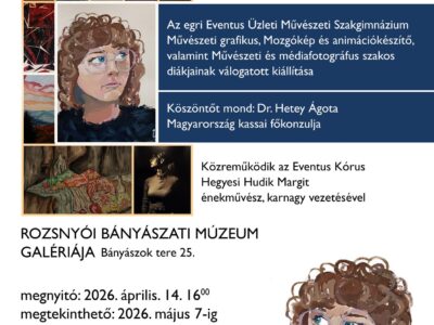 2026 április 14. 16:00 - Rozsnyó Kiállítás: Egri keresztmetszet – fiatal alkotók bemutatkozása a Galériában A Rozsnyói Bányászati Múzeum, a Kassa Megyei Önkormányzat kulturális intézménye,... Bővebben