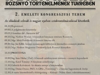 2026 február 6. 8:30 - Rozsnyó A bányászat Rozsnyó történelmének tükrében – konferencia a városházán Az idei Rozsnyói Városnapok részeként kerül megrendezésre A bányászat Rozsnyó történelmének... Bővebben