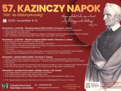 A Csemadok Kassai Városi Választmánya 2025. november 6-8-án immár 57. alkalommal rendezi meg a Kazinczy Napokat Kassán. A rendezvénysorozat ez évi témája: „Két- és többnyelvűség”.  Program:  November... Bővebben