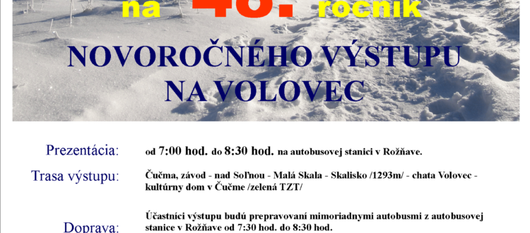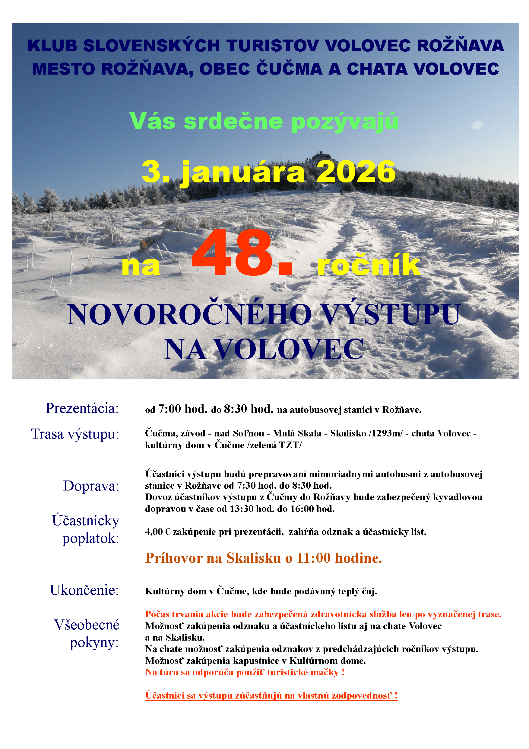 A rozsnyói Volovec turistaklub, Rozsnyó város, Csucsom község és a Volovec menedékház 2026. január 3-án, szombaton szervezi meg a 48. újévi pozsálói túrát.