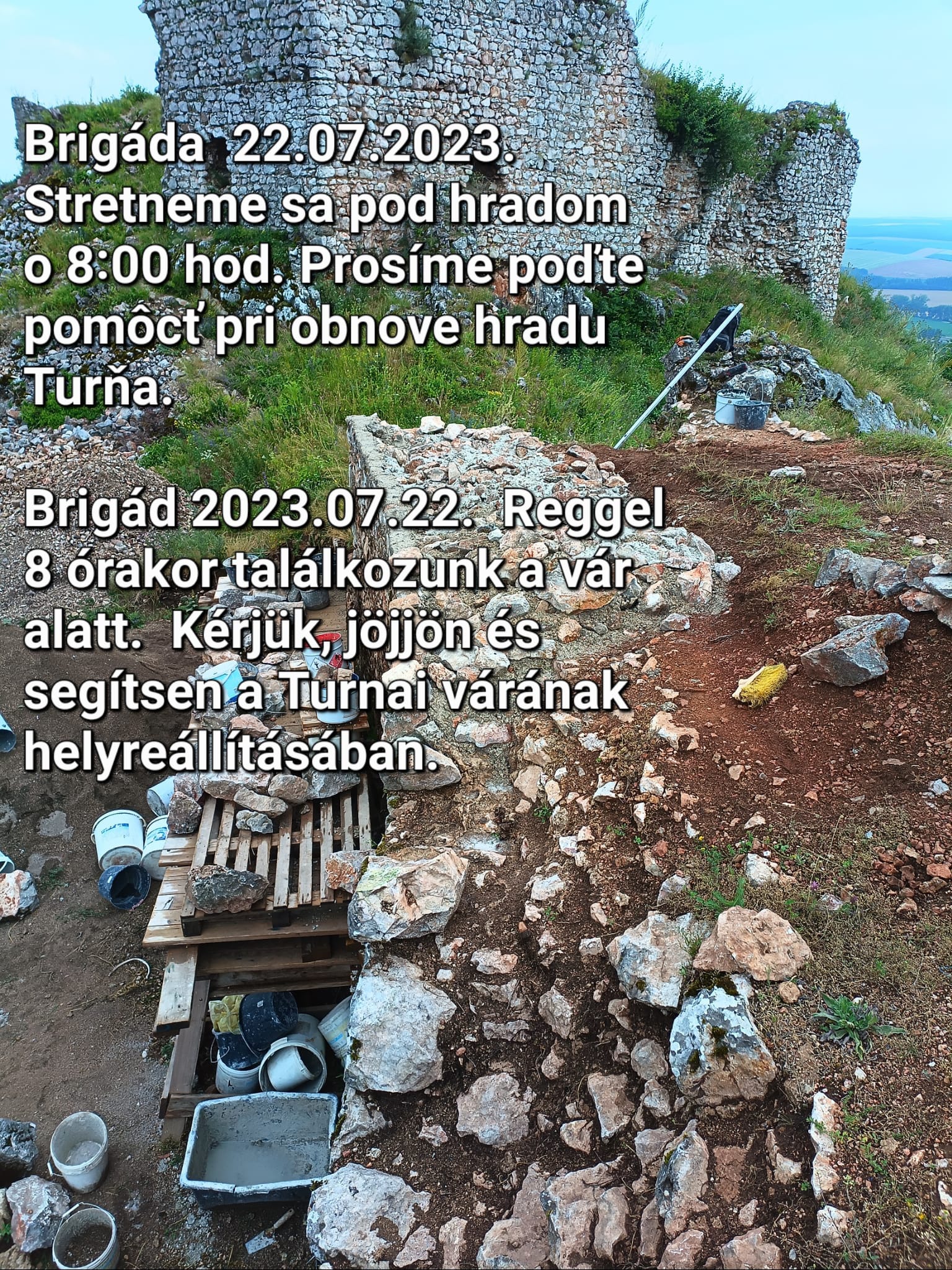 Az OZ Castrum Thorna társulás tagjai 2023. július 22-én, szombaton reggel 8.00 órától brigádot szerveznek. Azt kérik, aki teheti, csatlakozzon az önkéntesekhez és segítsen a tornai vár helyreállításában.