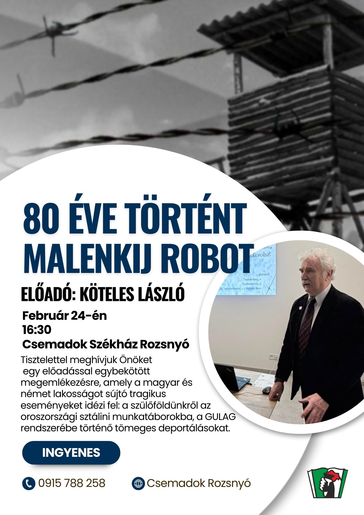 2026. február 24-én, kedden 16:30-tól Köteles László előadásával egybekötött megemlékezésre várják az érdeklődőket a rozsnyói Csemadok székházba.