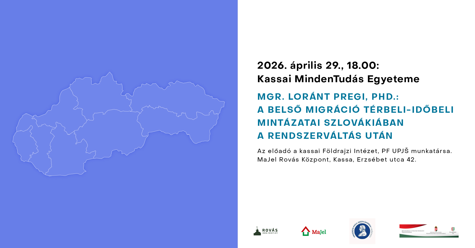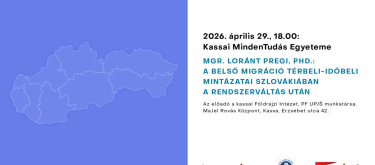 Április 29-én 18:00 órától Mgr. Loránt Pregi, PhD.: A belső migráció térbeli-időbeli mintázatai Szlovákiában a rendszerváltás után című előadására kerül sor a Kassai MindenTudás Egyeteme keretében. Az esemény helyszíne a MaJel Rovás Központ. Az előadó a kassai Földrajzi Intézet, PF UPJŠ munkatársa.