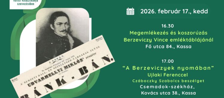 16:30-kor kerül sor a hagyományos megemlékezésre a Berzeviczy-palota homlokzati falára kihelyezett emléktáblánál a Fő utcán. Ez a hely az egykori színidirektort, Berzeviczy Vincét idézi, aki támogatta a Bánk bán kassai bemutatóját. 2014-ben, halálának 180. évfordulóján a kassai Csemadok kezdeményezésére került az épület falára a márványtábla. Ezt követően 17:00 órától a Csemadok-székház emeleti termében „A Berzeviczyek nyomában” címmel Ujlaki Ferenccel beszélget Czáboczky Szabolcs.