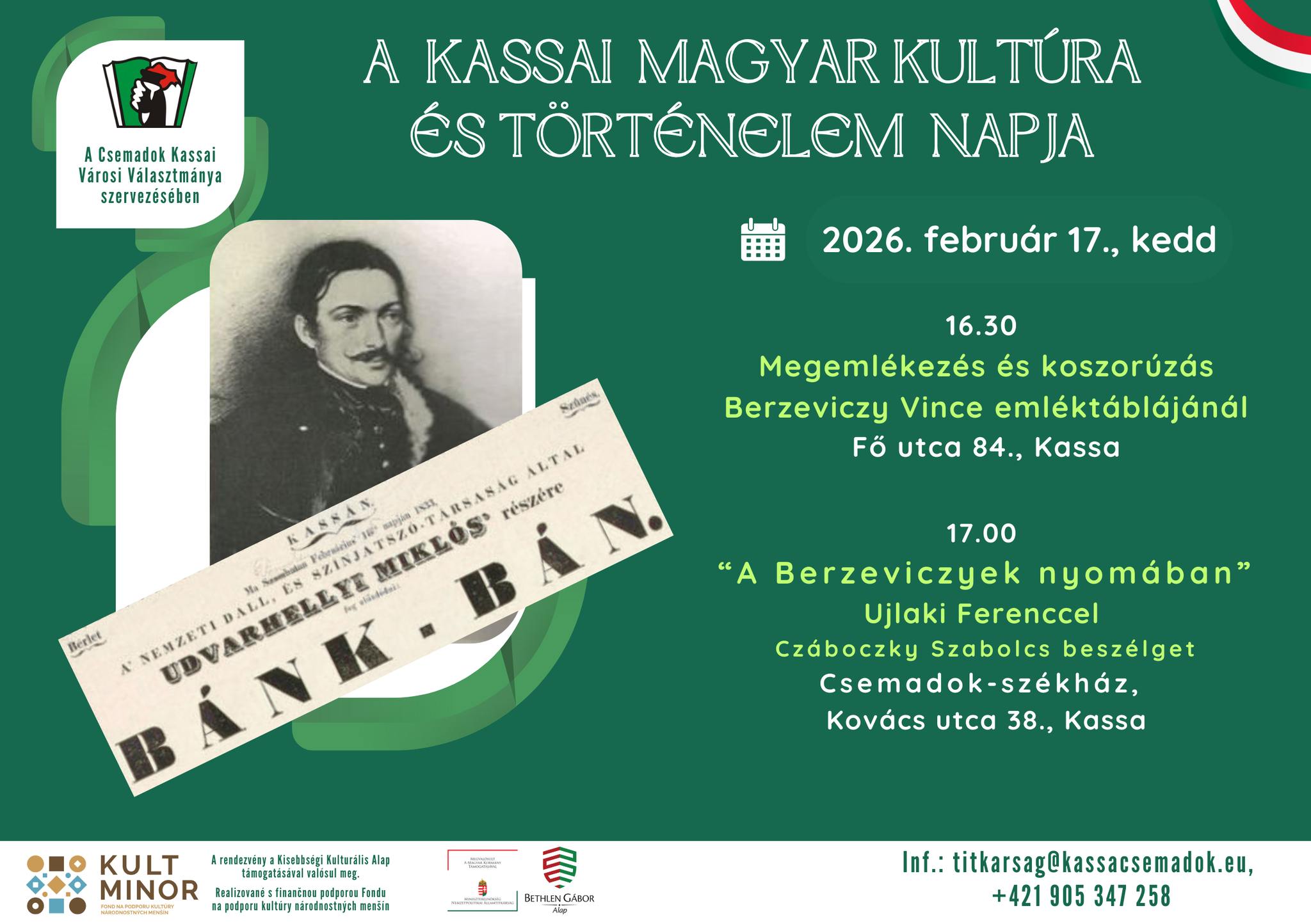 A Csemadok Kassai Városi Választmánya 2026. február 17-én, kedden ünnepli meg a kassai magyar kultúra és történelem napját.