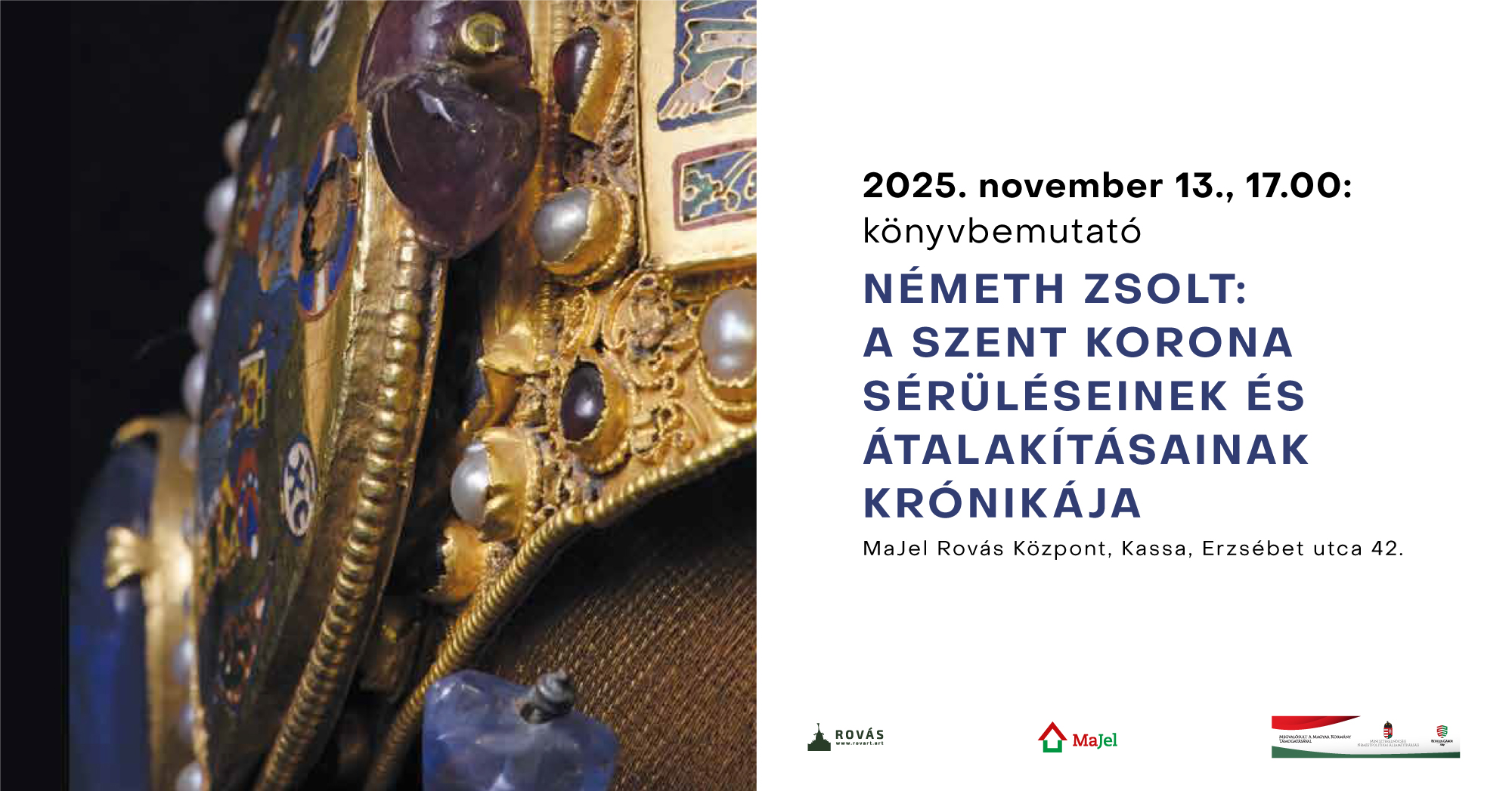 November 13-án 17:00 órakor kerül sor Németh Zsolt A Szent Korona sérüléseinek és átalakításainak krónikája című könyvének bemutatójára Kassán, a MaJel Rovás Központban.