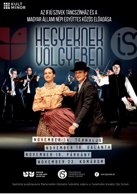 A pozsonyi Ifjú Szivek Táncszínház és a Magyar Állami Népi Együttes Hegyeknek völgyében című közös előadását láthatja a közönség 2025. november 14-én 19:00 órától a Tornaljai Tompa Mihály Városi Művelődési Központban.