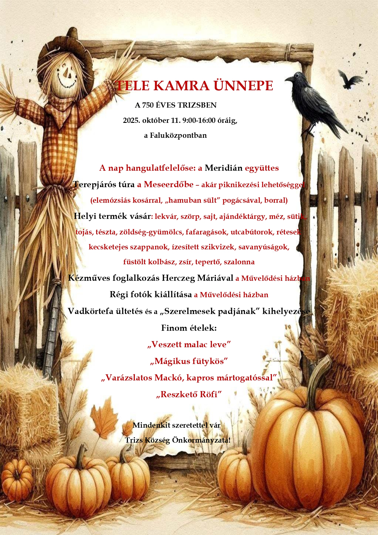 „Használjuk ki még az ősz talán utolsó napsugarait, töltsük meg a kamráinkat és töltsük fel a lelkünket vidámsággal és szeretettel a 750 éves Trizsben” – szól a szervezők meghívása.