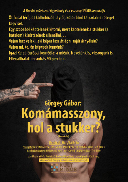 „Véletlenül mindig máshoz kerül a stukker: a hatalom. Ki, hogyan él vele és miként viselkednek a többiek?” Erről szól a Komámasszony, hol a stukker? című komédia, amelyet 2026. április 20-án, hétfőn 19:00 órától láthat a közönség Tornalján, a Tompa Mihály városi Művelődési Központban.