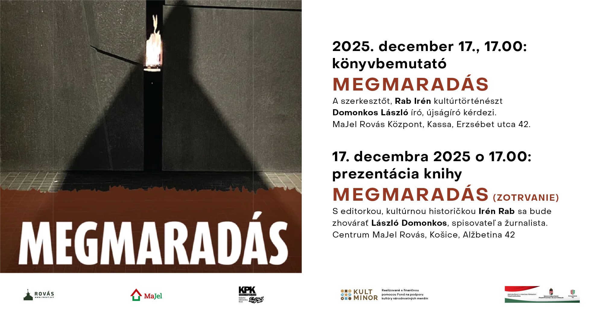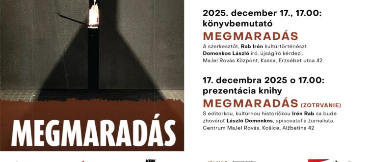 2025. december 17-én 17:00 órától kerül sor a Megmaradás című könyv bemutatójára Kassán, a MaJel Rovás Központban. A szerkesztőt, Rab Irén kultúrtörténészt Domonkos László író, újságíró kérdezi.