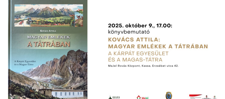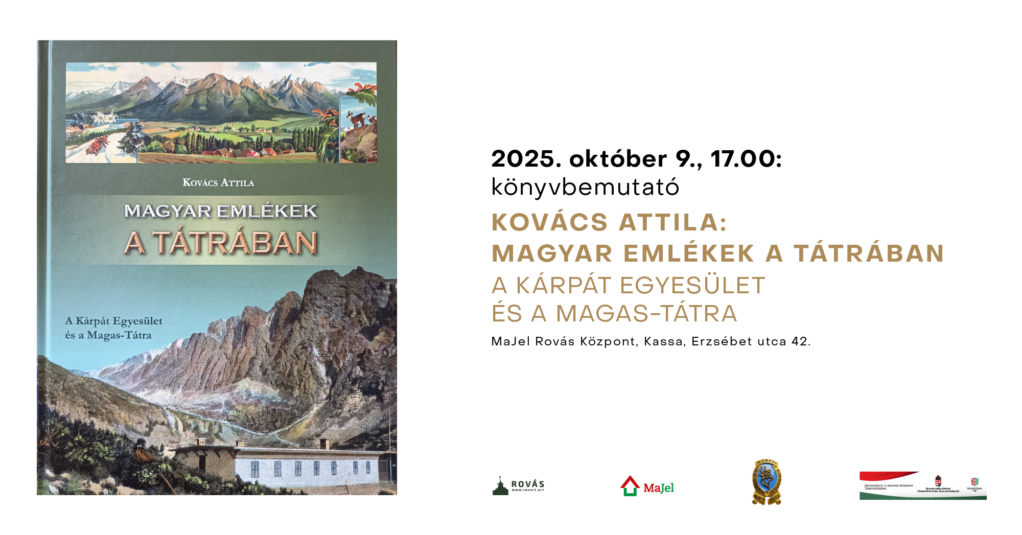 Október 9-én 17:00 órától mutatják be Kovács Attila Magyar emlékek a Tátrában. A Kárpát Egyesület és a Magas-Tátra című könyvét Kassán, a MaJel Rovás Központban.