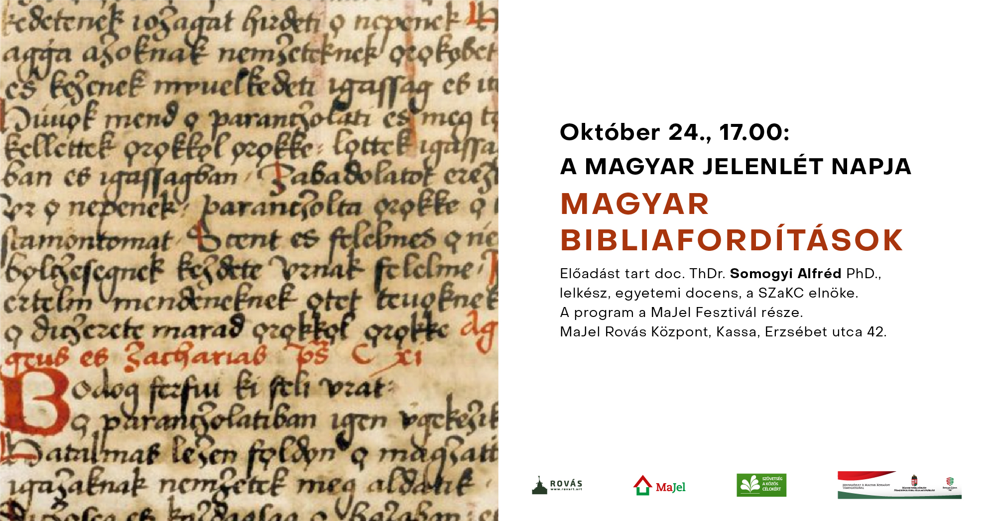 Október 24-én 17:00 órakor doc. ThDr. Somogyi Alfréd PhD., lelkész, egyetemi docens, a SZaKC elnöke tart előadást Magyar bibliafordítások címmel Kassán, a MaJel Rovás Központban.