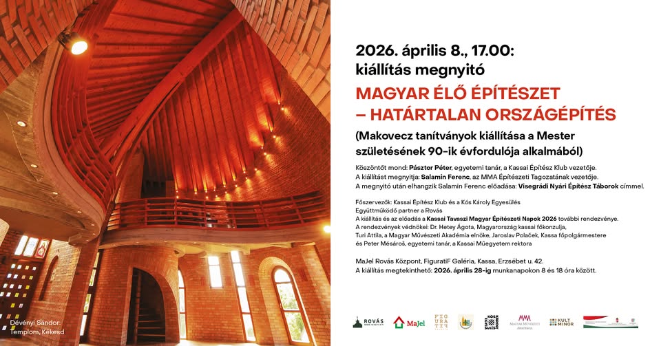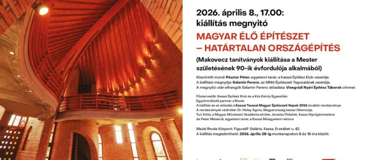 2026. április 8-án 17:00 órakor nyitják meg a Magyar Élő Építészet – Határtalan Országépítés című kiállítást Kassán, a MaJel Rovás Kӧzpont FiguratiF Galériájában. Makovecz Imre tanítványainak kiállítására a neves építész születésének 90. évfordulója alkalmából kerül sor.