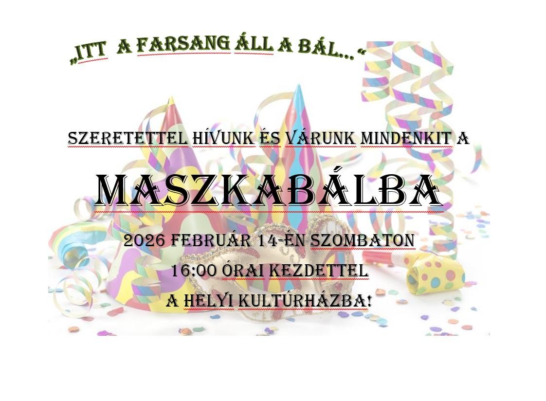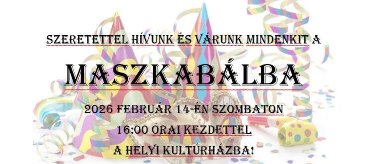 Farsangi maszkabált szerveznek 2026. február 14-én, szombaton 16:00 órai kezdettel Jabloncán, a helyi kultúrházban.