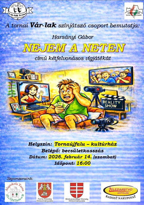 A tornai Vár-lak amatőr színjátszó csoport 2026. február 14-én, szombaton 16:00 órától mutatja be legújabb darabját a tornaújfalui kultúrházban.